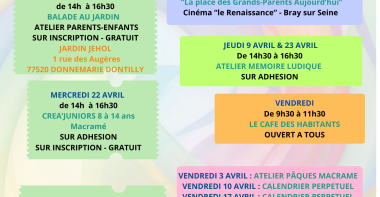 Le programme des animations de l'EVS Familles Rurales pour le mois de avril 2026 !