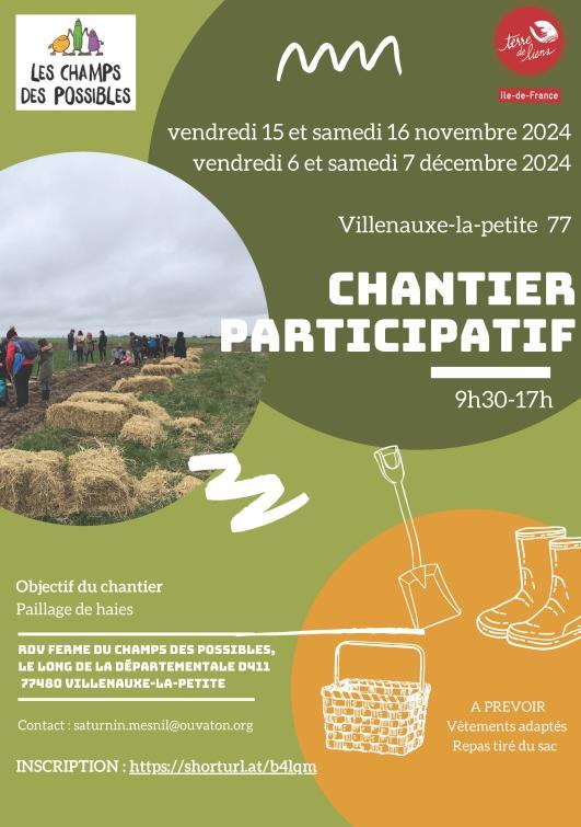 Villenauxe-la-Petite Chantier participatif à Villenauxe-la-Petite Les 15 et 16 novembre 2024 ! Du 15 Nov 2024 au 16 Nov 2024 Time: 09h30m - 17h Villenauxe-la-Petite Courriel Les champs des possibles Localiser Choice of plan Précédent Retour à la liste Suivant