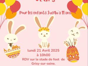 Animation, Grisy-sur-Seine Chasse aux oeufs à Grisy-sur-Seine Le 21 avril 2025 ! 21 Avr 2025 Time: 10h Grisy-sur-Seine Commune de Grisy-sur-Seine Localiser Choice of plan Précédent Retour à la liste Suivant