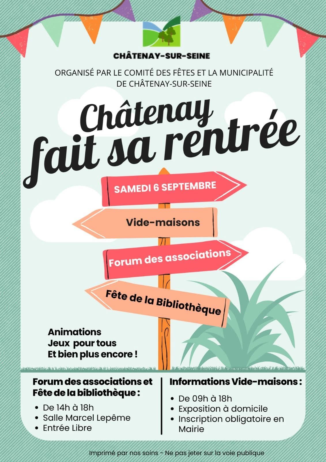 Animation, Vide-grenier, Châtenay-sur-Seine Châtenay-sur-Seine fait sa rentrée Le 6 septembre 2026 ! 06 Sept 2025 Châtenay-sur-Seine Commune de Châtenay-sur-Seine Localiser Choice of plan Précédent Retour à la liste Suivant