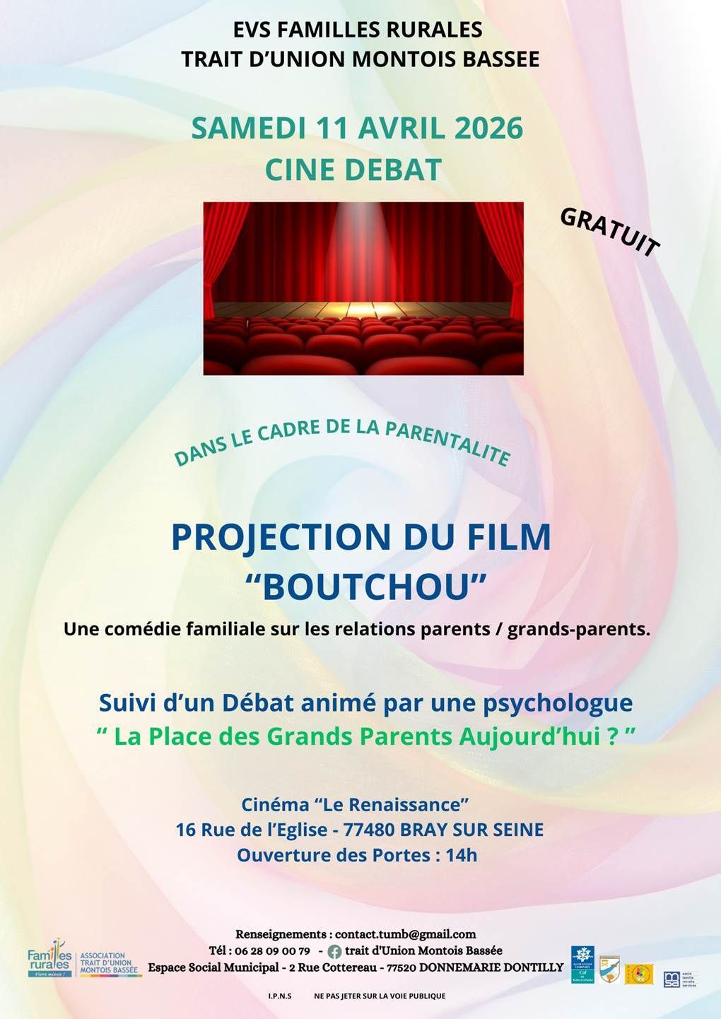 Familles rurales association trait d'union Montois Bassée | Cinéma Le Renaissance
