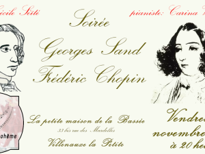 Animation, Villenauxe-la-Petite Soirée Georges Sand et Frédéric Chopin à Villenauxe-la-Petite Le 7 novembre 2025 ! 07 Nov 2025 Time: 20h Villenauxe-la-Petite Théâtre de Bohème Localiser Choice of plan Précédent Retour à la liste Suivant
