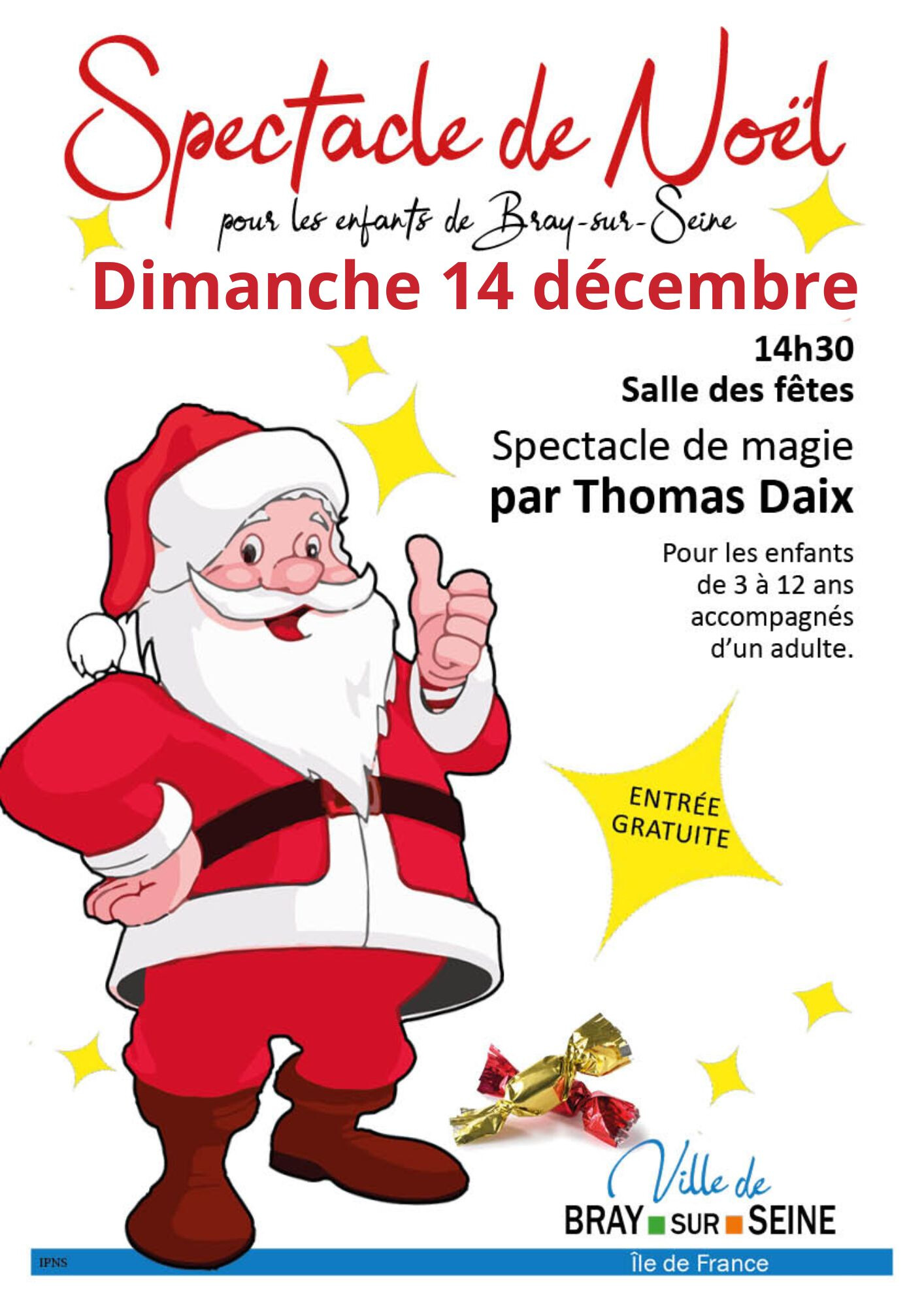 Spectacle, Bray-sur-Seine Spectacle de Noël à Bray-sur-Seine Le 14 décembre 2025 ! 14 Déc 2025 Time: 14h30m Bray-sur-Seine Ville de Bray-sur-Seine Localiser Choice of plan Précédent Retour à la liste Suivant