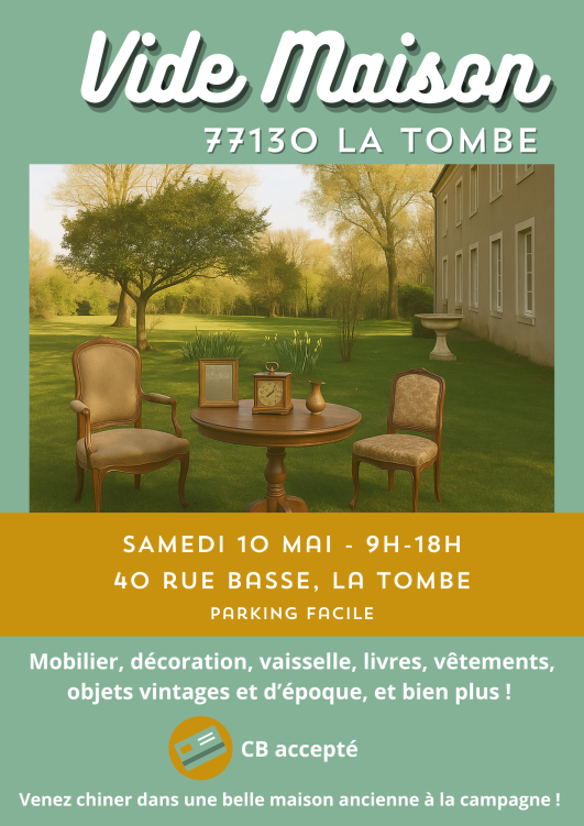 Vide-grenier, La Tombe Vide maison à La Tombe Le 10 mai 2025 ! 10 Mai 2025 Time: 09h - 18h La Tombe Commune de La Tombe Localiser Choice of plan Précédent Retour à la liste Suivant