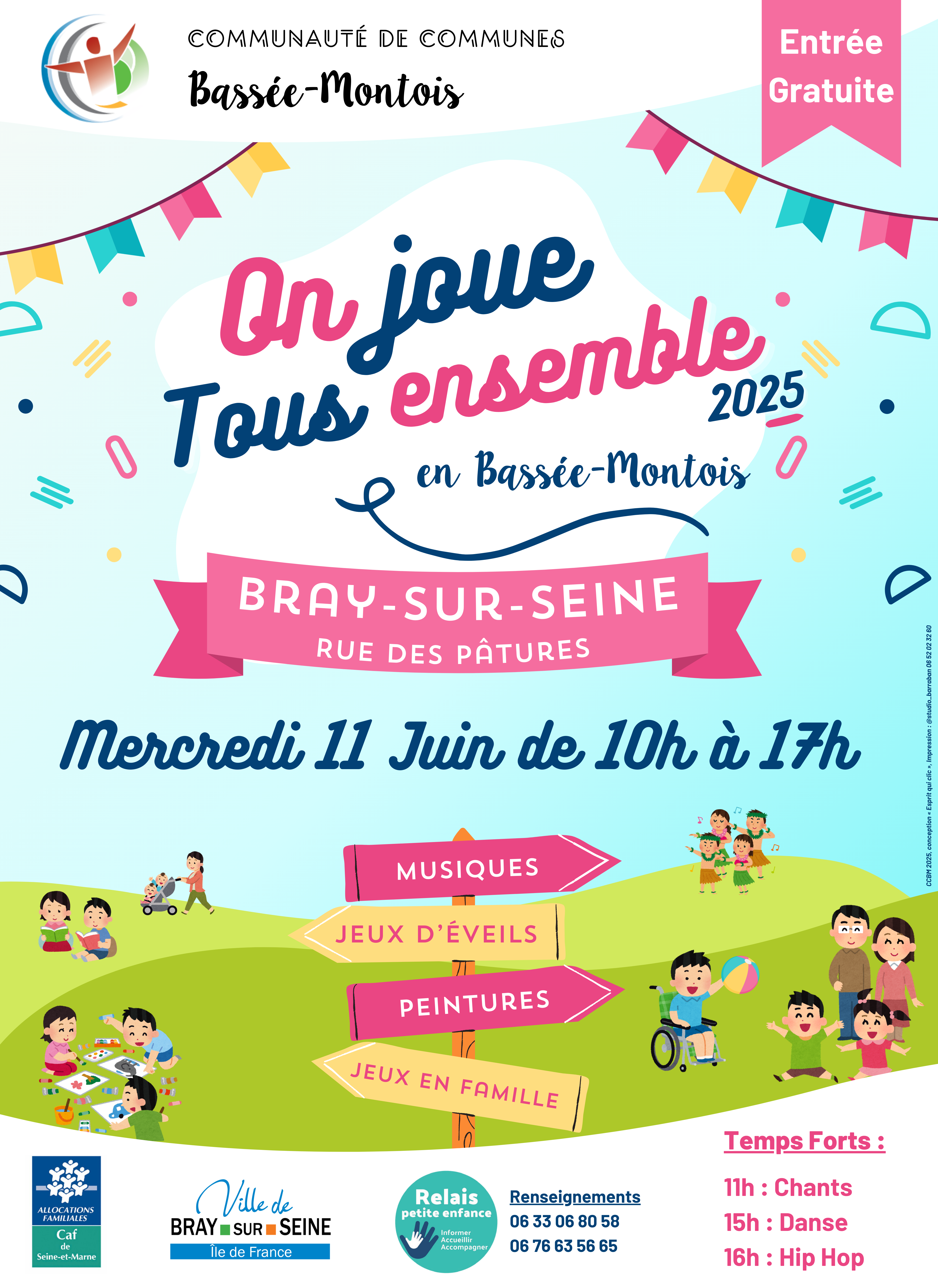 De nombreux partenaires locaux se sont mobiliser aux côtés de la Communauté de communes Bassée-Montois pour faire vivre la 3ème édition de cette journée intergénérationnelle de soutien à la parentalité à la fois conviviale, éducative et ludique autour de la thématique du jeu : « On joue tous ensemble en Bassée-Montois » le mercredi 11 juin 2025.