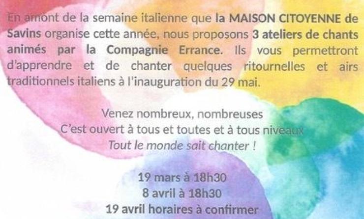 Du 08 Avr 2026 au 19 Avr 2026 Atelier Ateliers de chant à Savins Les 8 avril et 19 avril 2026 ! Shedule 18h30 Place Savins