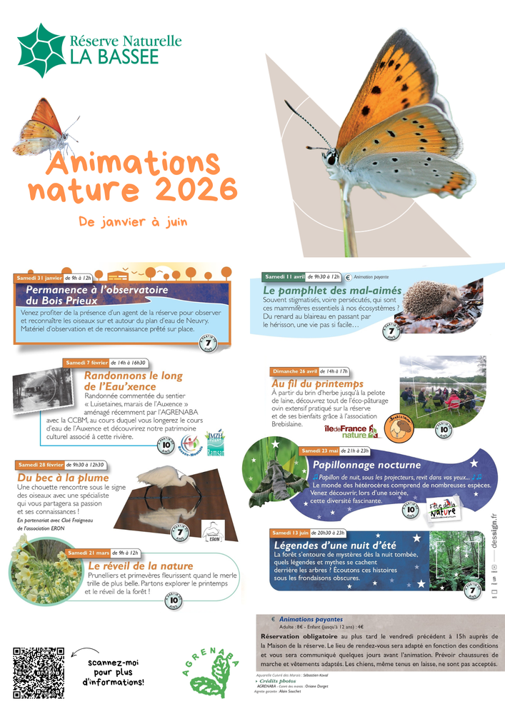 Animation Animations de la Réserve naturelle de la Bassée 2026 Les animations de la Réserve naturelle de la Bassée en 2026 ! Date de publication de la page et auteur de publication Créé le : 20/01/2026 Précédent Retour à la liste Suivant
