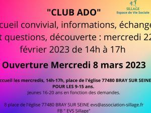 Animation CLUB ADO 2023 Voir affiche en pièce jointe Date de publication de la page et auteur de publication Créé le : 21/02/2023 - Mis à jour le : 8/03/2023 Télécharger Club Ado 2023 PDF 445.07 Ko Précédent Retour à la liste Suivant