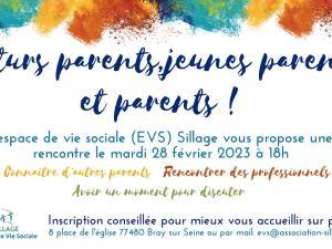 Enfance / Famille Futurs parents 2023 voir affiche en pièce jointe Date de publication de la page et auteur de publication Créé le : 21/02/2023 - Mis à jour le : 28/02/2023 Télécharger Rencontre Futurs parents le 28/02/23 PDF 428.1 Ko Précédent Retour à la liste Suivant