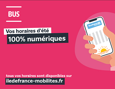 Retrouvez dès maintenant l'intégralité de vos horaires d'été sur le site www.me-deplacer.iledefrance-mobilites.fr