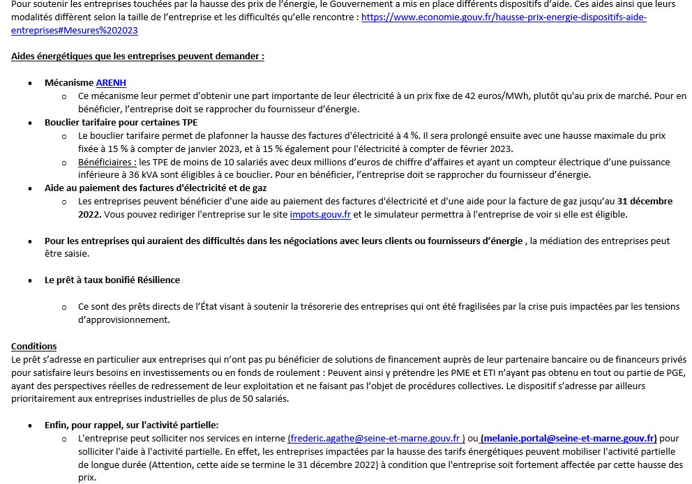 Entreprise Information aux entreprises 2022 INFORMATION IMPORTANTE POUR LES ENTREPRISES - voir en pièce jointe Date de publication de la page et auteur de publication Créé le : 6/12/2022 - Mis à jour le : 6/12/2022, par PREFET DE SEINE ET MARNE Télécharger Communiqué pour entreprises Préfecture 2022 PDF 497.36 Ko Précédent Retour à la liste Suivant