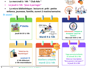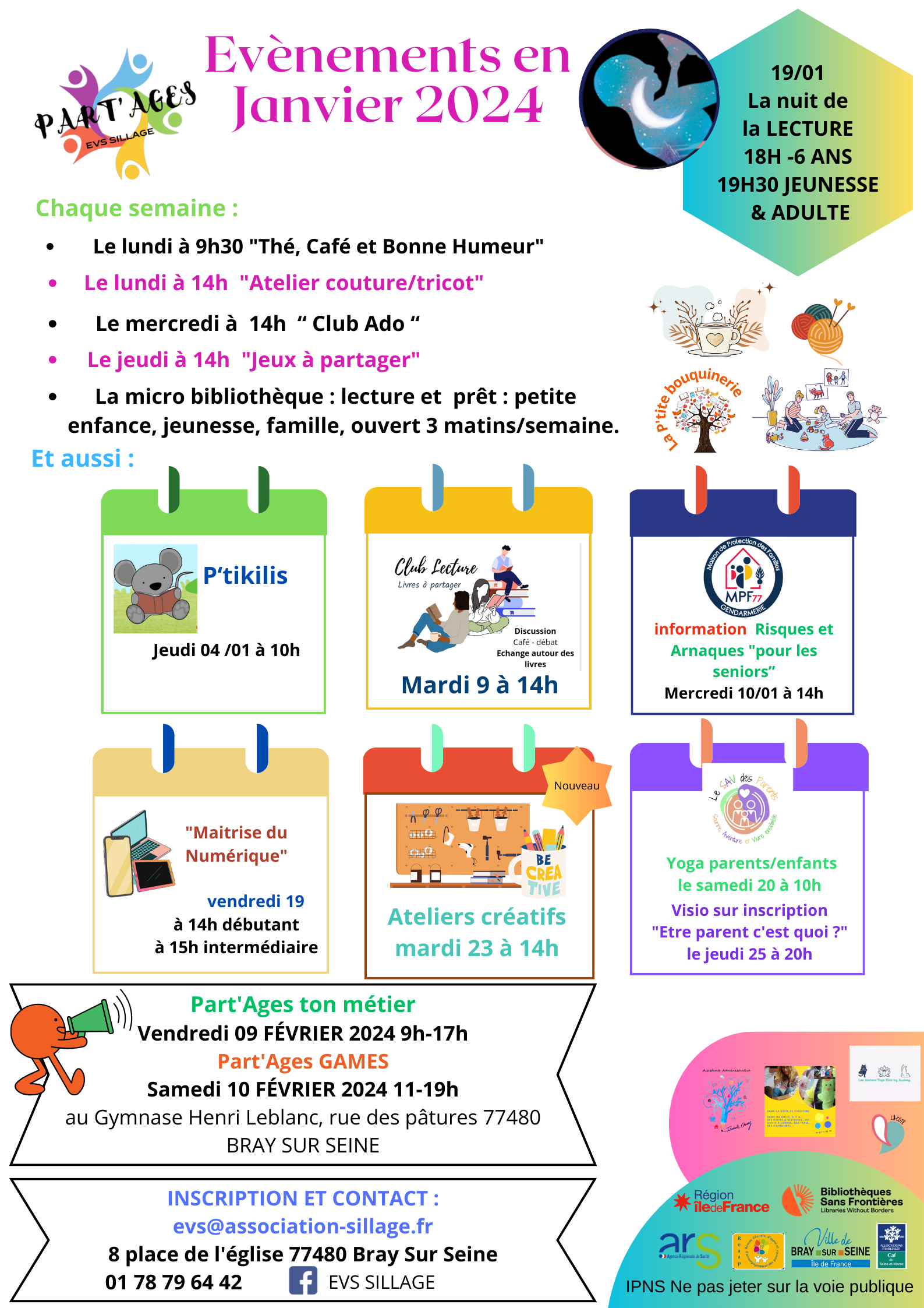 Associations Programme de l'EVS Sillage - Janvier 2024 Le programme des événements de l'EVS Sillage pour le mois de janvier ! Date de publication de la page et auteur de publication Créé le : 8/01/2024 Télécharger Programme des évènements EVS Sillage - Janvier 2024 PDF 1.46 Mo Précédent Retour à la liste Suivant