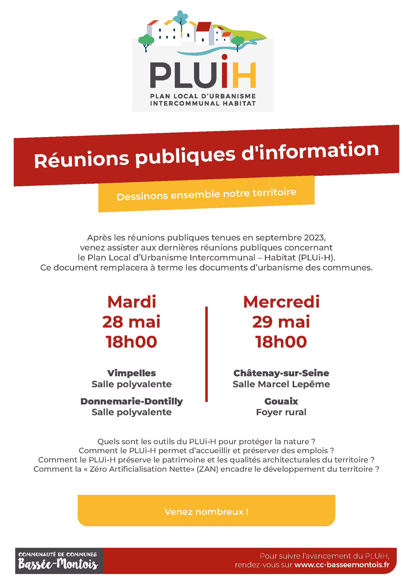Venez participer à l'une des 4 réunions d'information organisées sur le thème du PLUI-H les 28 et 29 mai à 18h.