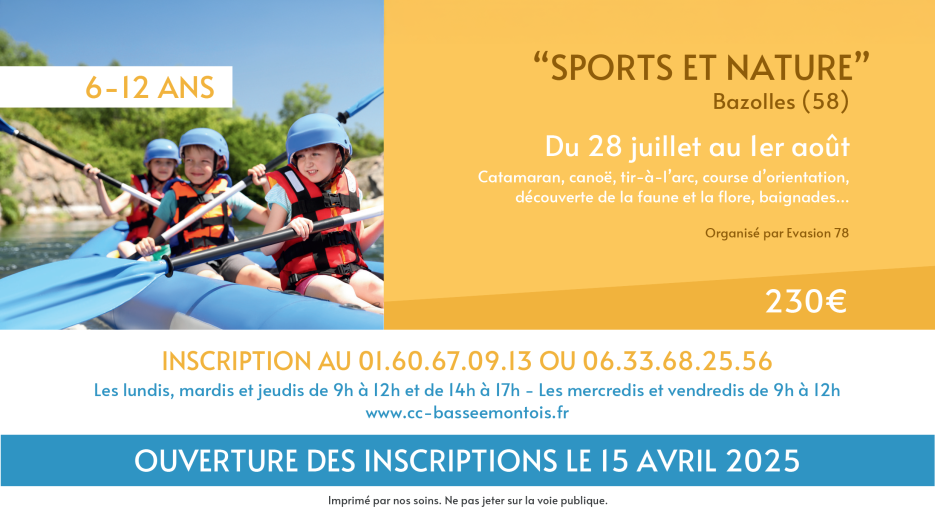 Sejours Séjours été 2025 Juillet/Août 2025 Date de publication de la page et auteur de publication Créé le : 7/04/2025 - Mis à jour le : 7/04/2025 Précédent Retour à la liste Suivant
