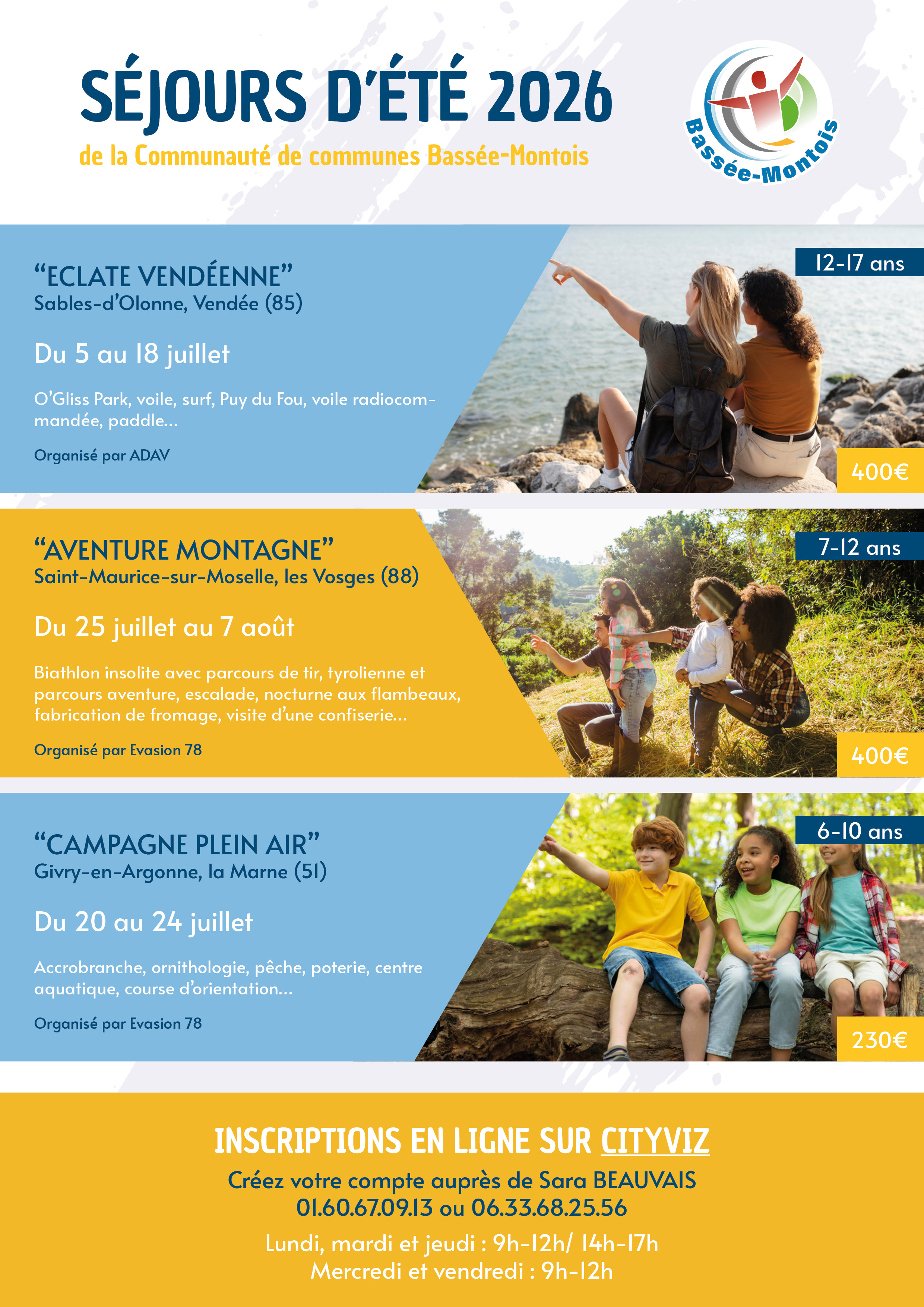 Sejours Séjours été 2026 Juillet/Août 2026 Date de publication de la page et auteur de publication Créé le : 24/04/2026 - Mis à jour le : 7/04/2025 Précédent Retour à la liste Suivant