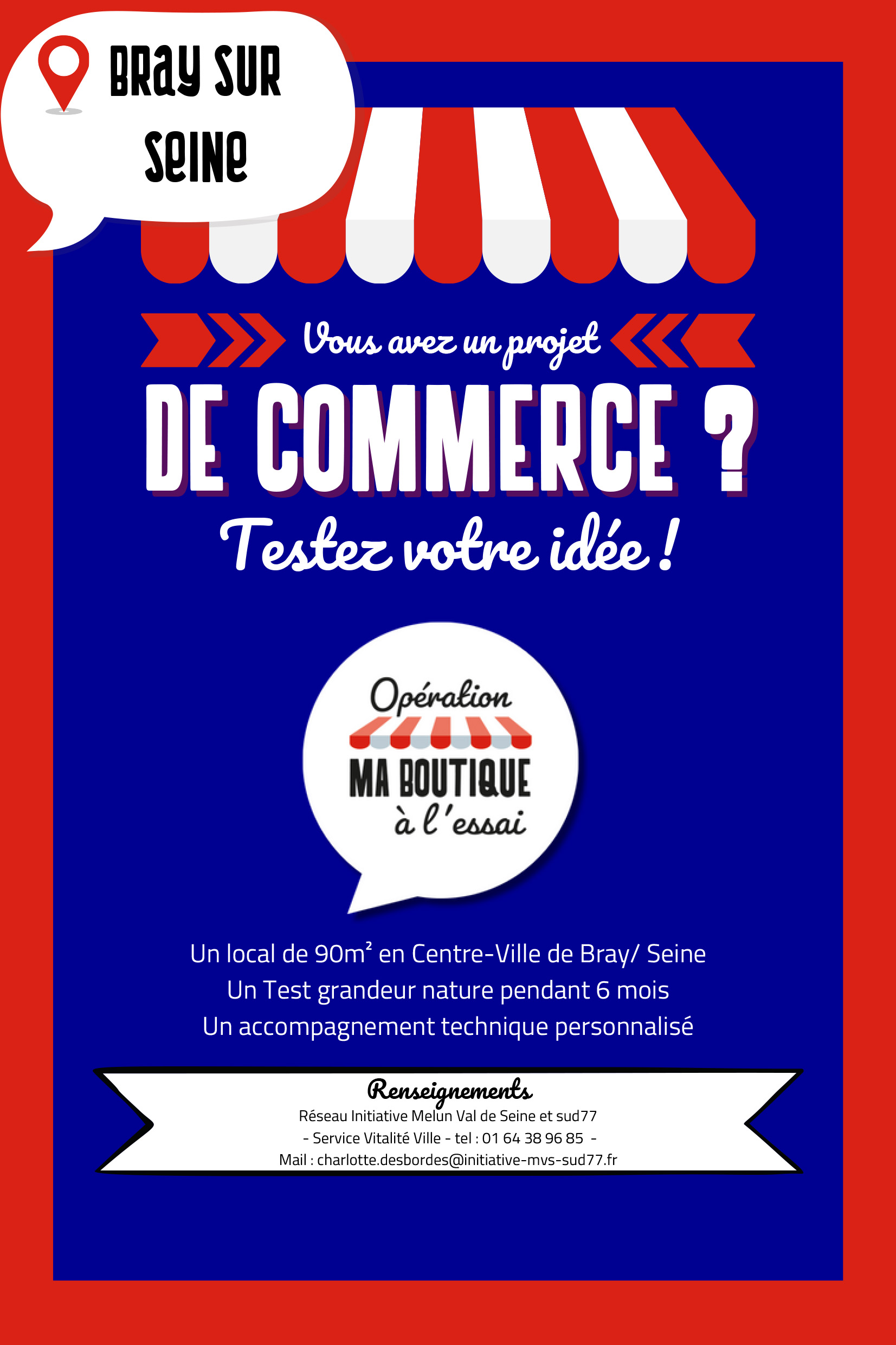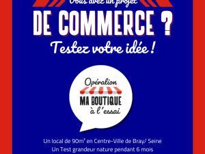 Economie Testez votre idée de boutique ! Vous avez un concept de boutique ? venez le tester à Bray-sur-Seine ! Date de publication de la page et auteur de publication Créé le : 27/03/2024 Venez tester votre concept de boutique pendant 6 mois au sein d'un local de 90m² situé à Bray-sur-Seine. Retrouvez-plus d'informations sur le flyer en pièce téléchargeable. Télécharger Flyer et modalités PDF 291.84 Ko Communiqué de presse PDF 236.44 Ko Précédent Retour à la liste Suivant