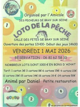 En ce moment 01 Mai 2026 Loto, Bray-sur-Seine Loto de la pêche à Bray-sur-Seine Le 1er mai 2026 ! Address: Bray-sur-Seine