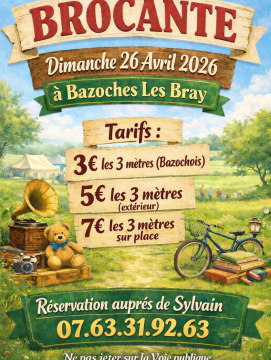 En ce moment 26 Avr 2026 Brocante, Bazoches-lès-Bray Brocante à Bazoches-les-Bray Le 26 avril 2026 ! Address: Bazoches-les-Bray