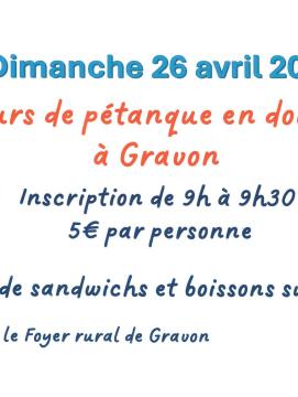 En ce moment 26 Avr 2026 Concours, Gravon Concours de pétanque à Gravon Le 26 avril 2026 ! Address: Gravon