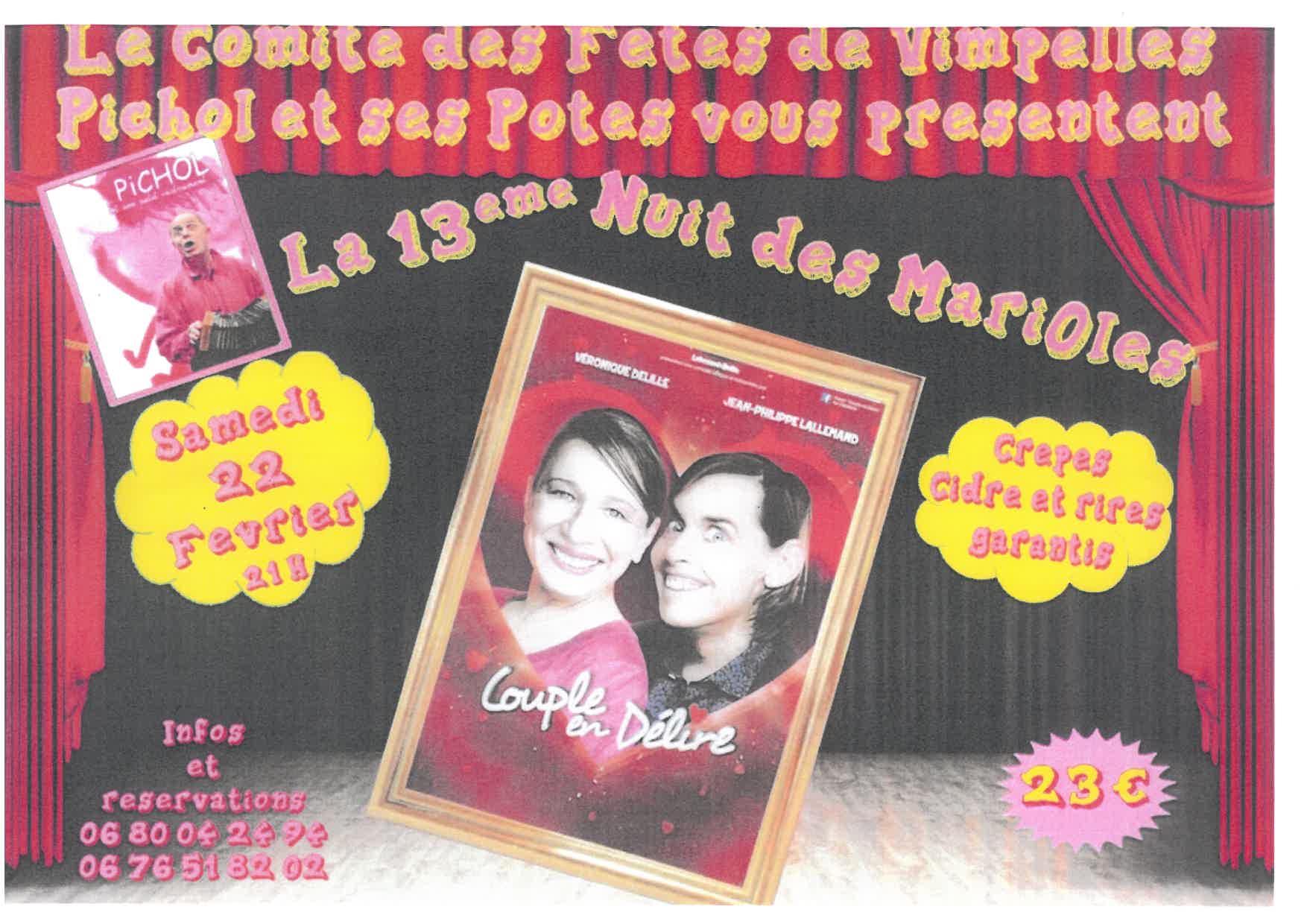 Animation, Vimpelles 13ème nuit des marioles à Vimpelles Le 22 février 2025 ! 22 Fév 2025 Time: 21h Vimpelles 06 80 04 24 94 Comité des fêtes de Vimpelles Tarification : 23€ Localiser Choice of plan Précédent Retour à la liste Suivant