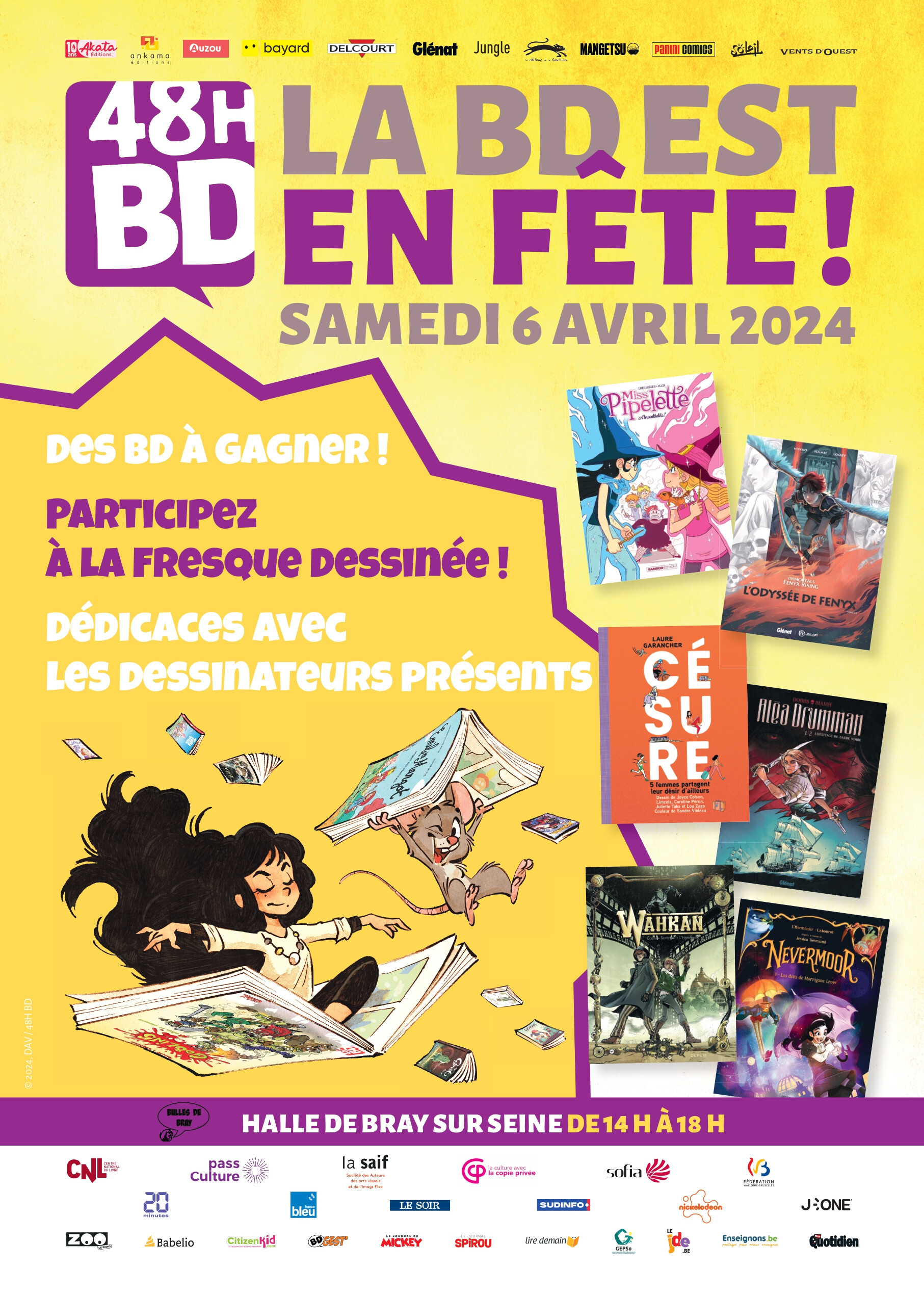 Manifestation, Bray-sur-Seine 48h BD : La BD est en fête ! à Bray-sur-Seine Le samedi 6 avril à la Halle de Bray-sur-Seine ! 06 Avr 2024 Time: 14h - 18h Rue du Baillage, 77480 Bray-sur-Seine Localiser Choice of plan Précédent Retour à la liste Suivant