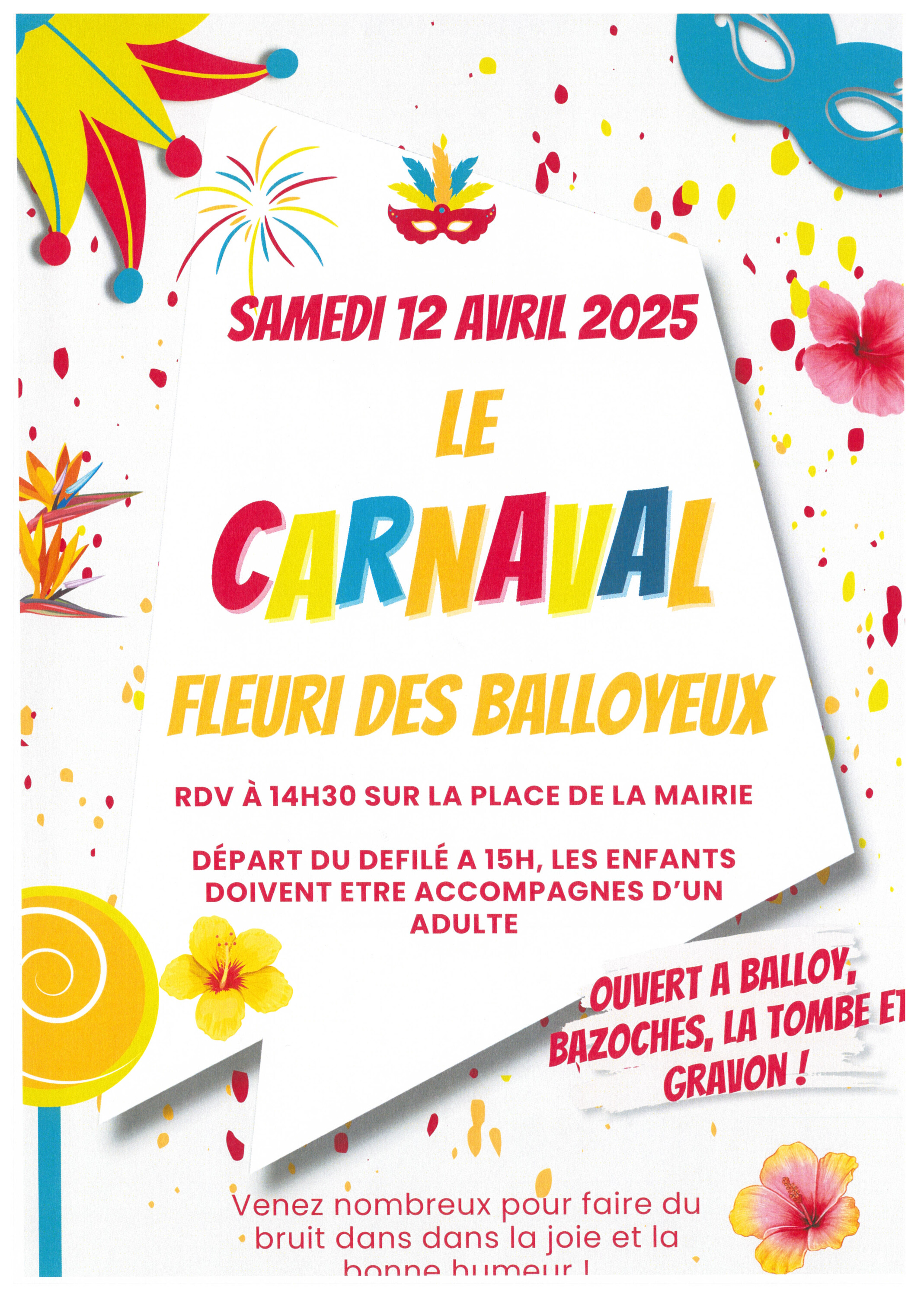 Manifestation, Balloy Carnaval fleuri des Balloyeux Le 12 avril 2025 ! 12 Avr 2025 Time: 14h30m Balloy Commune de Balloy Localiser Choice of plan Précédent Retour à la liste Suivant