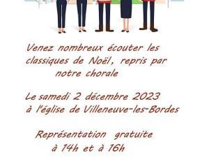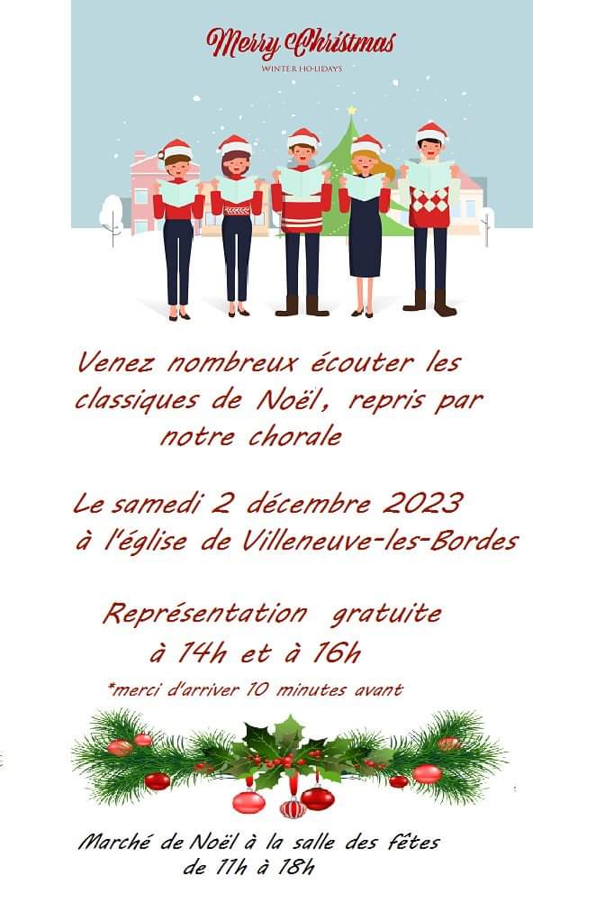 Concert, Villeneuve-les-Bordes Chants de Noël à Villeneuve-les-Bordes Le samedi 2 décembre à l'église de Villeneuve-les-Bordes ! Représentation gratuite à 14h et à 16h. 02 Déc 2023 Time: 14h Rue de la Grand Maison, 77154 Villeneuve-les-Bordes Tarification : Représentation gratuite Localiser Choice of plan Précédent Retour à la liste Suivant