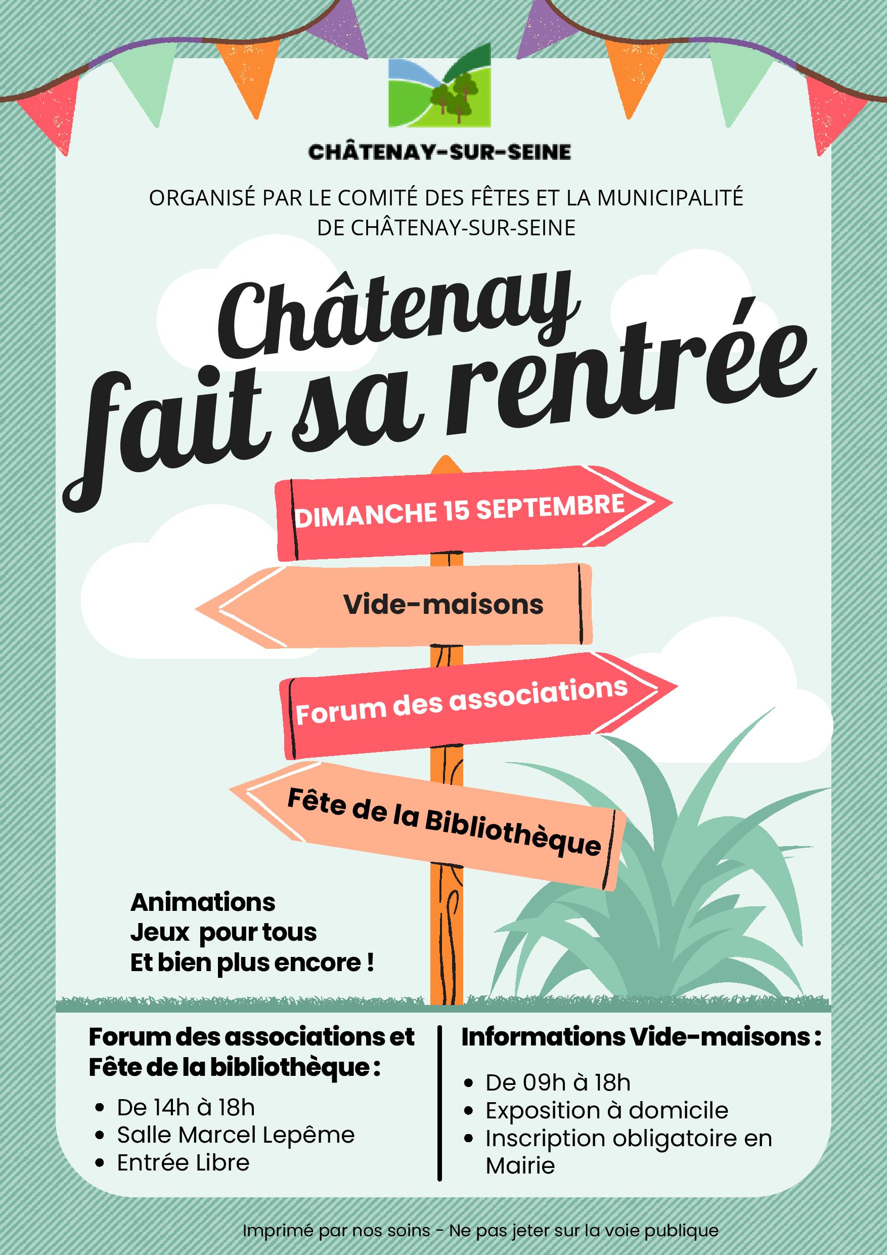 Animation, Châtenay-sur-Seine Châtenay fait sa rentrée Animations, jeux pour tous, et bien plus encore ! 15 Sept 2024 Châtenay-sur-Seine Comité des fêtes de Châtenay-sur-Seine Localiser Choice of plan Précédent Retour à la liste Suivant