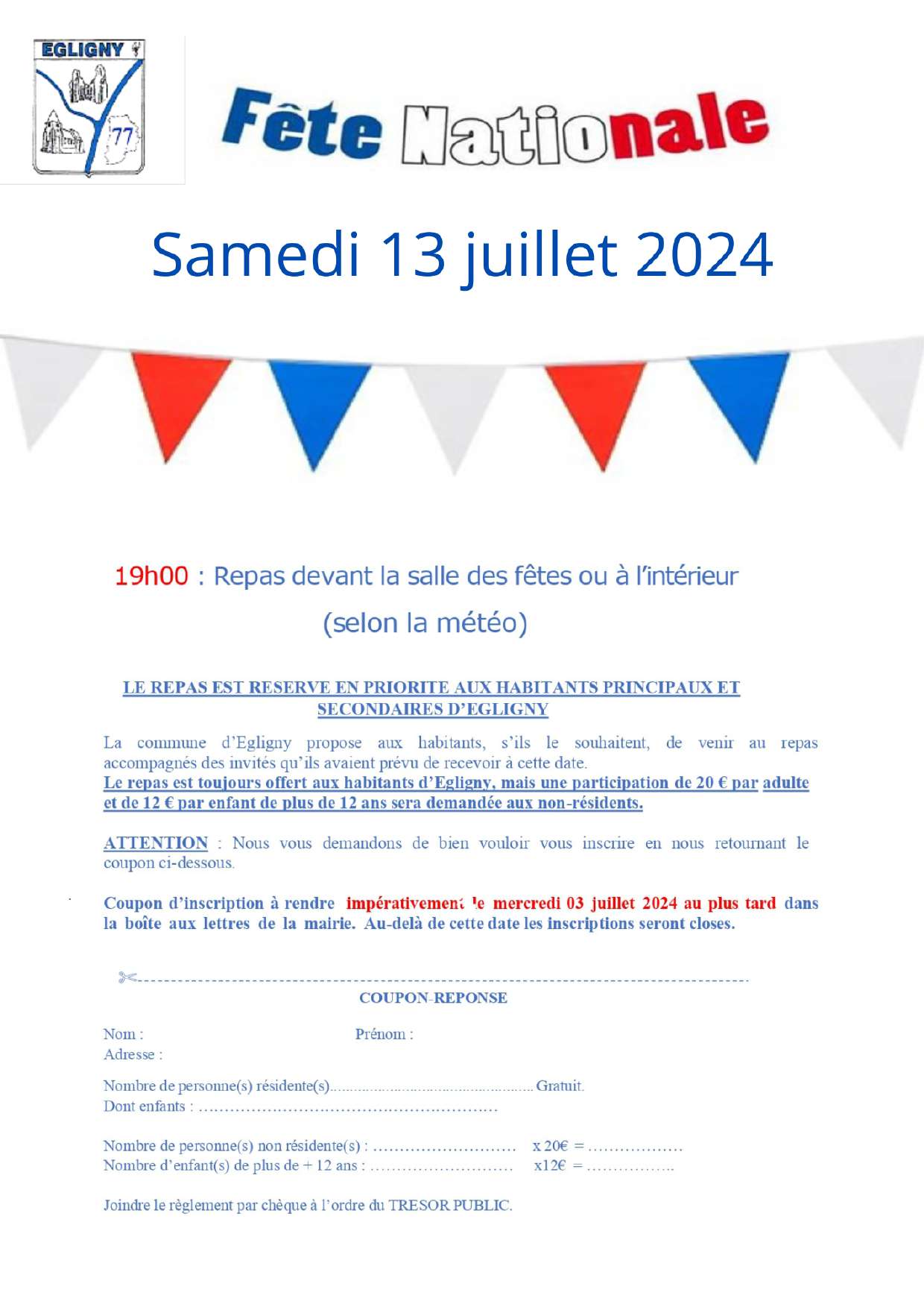 Modalités : Coupon d'inscription à rendre avant le 3 juillet 2024 au plus tard