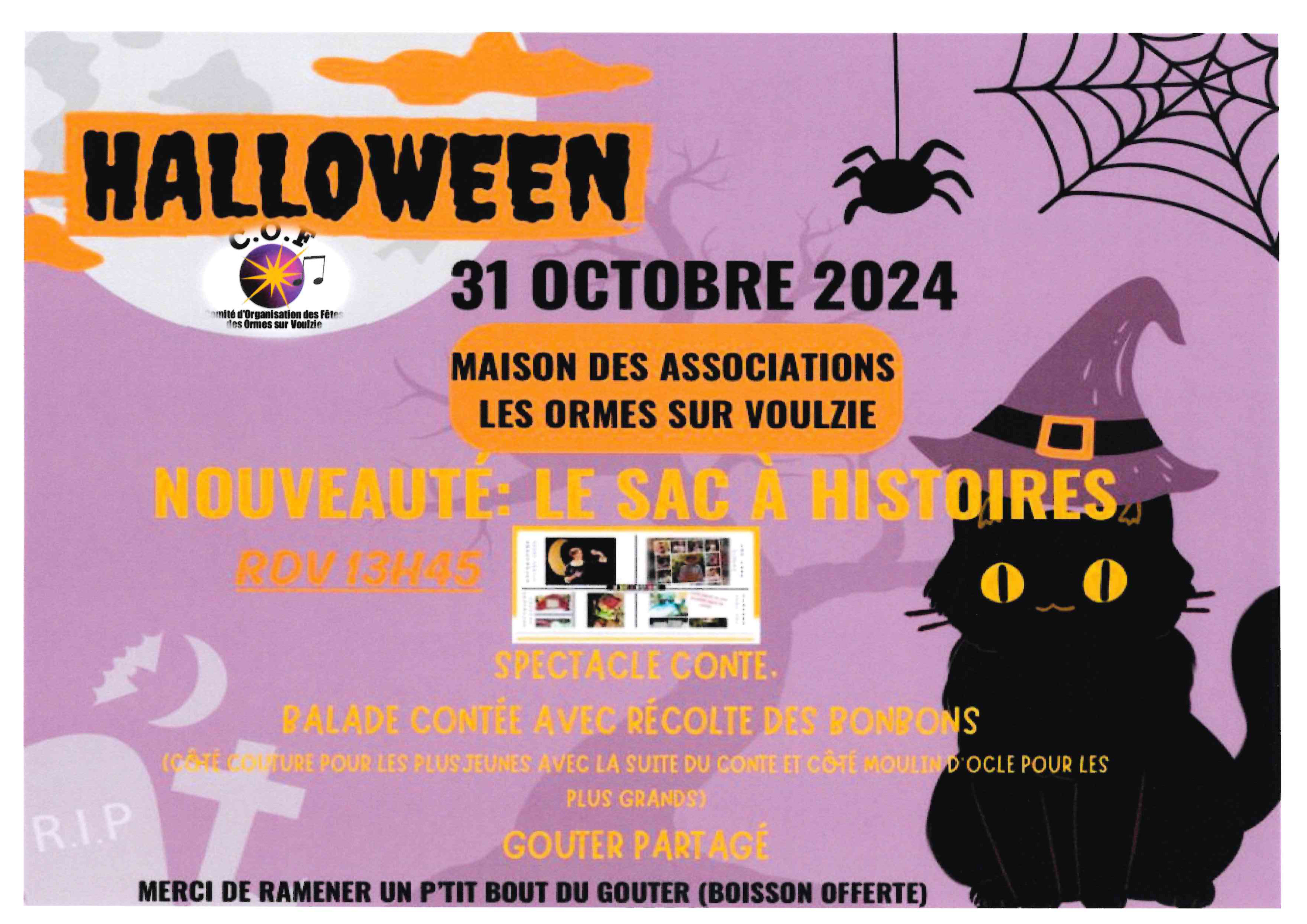 Animation d'Halloween, Les Ormes-sur-Voulzie Halloween aux Ormes-sur-Voulzie Le 31 octobre 2024 ! 31 Oct 2024 Les Ormes-sur-Voulzie Comité d'Organisation des Fêtes des Ormes-sur-Voulzie Localiser Choice of plan Précédent Retour à la liste Suivant