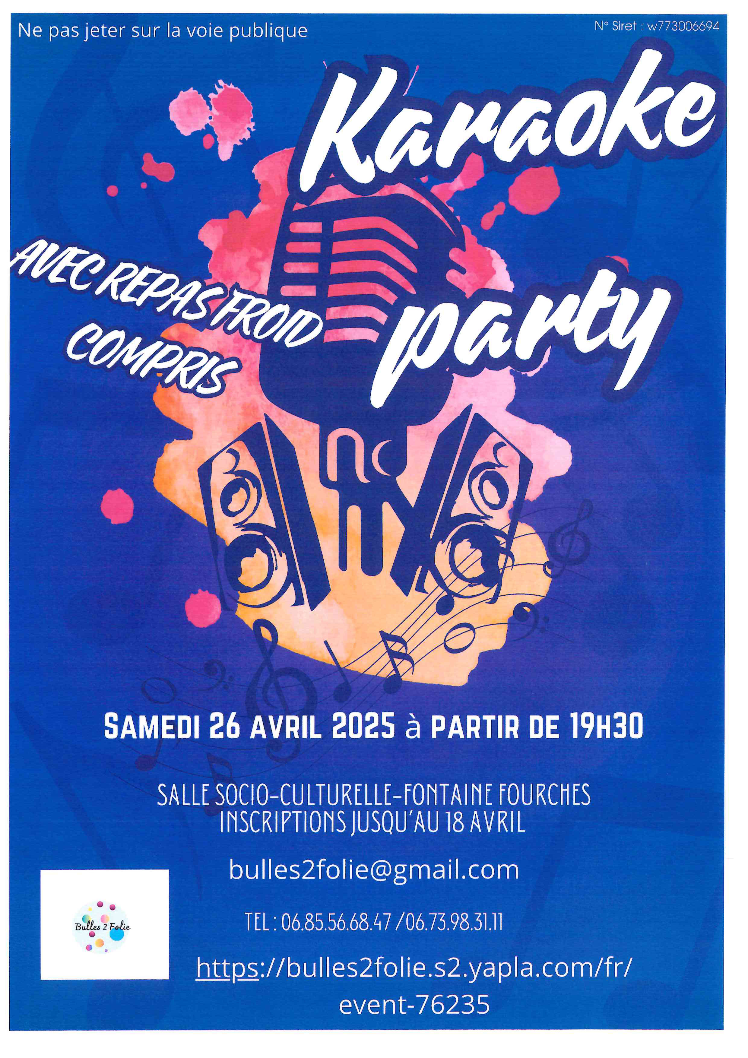 Animation, Fontaine-Fourches Karaoké party à Fontaine-Fourches Le 26 avril 2025 ! 26 Avr 2025 Time: 19h30m Fontaine-Fourches 06 85 56 68 47 Courriel Bulles 2 Folie Modalités : Sur inscription jusqu'au 18 avril Localiser Choice of plan Précédent Retour à la liste Suivant