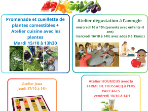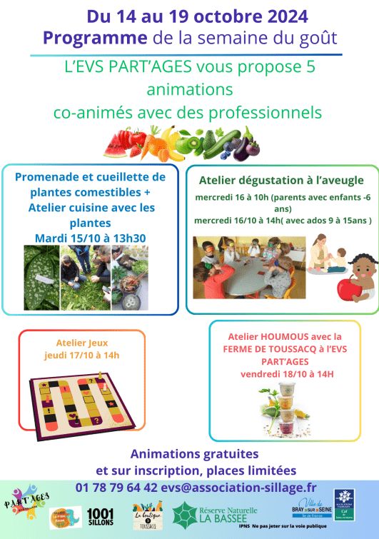 Animation Semaine du goût avec l'EVS Part'ages Du 14 au 19 octobre 2024 ! Du 14 Oct 2024 au 19 Oct 2024 EVS Part'ages 01 78 79 64 42 Courriel EVS Part'ages Modalités : Sur inscription Tarification : Animations gratuites Localiser Choice of plan Précédent Retour à la liste Suivant