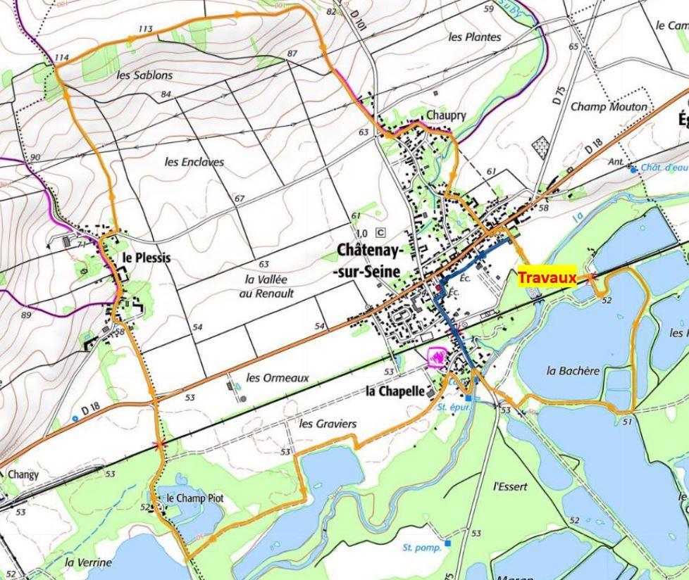 Des travaux sont en cours au niveau des étangs de Châtenay-sur-Seine.