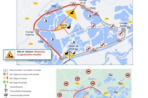 Aménagement Opération Seine Bassée Site pilote dans le secteur de Châtenay-sur-Seine - du 20 au 24 mars 2023 Pour la semaine, les principaux travaux de l'EPTB Seine Grands Lacs. Type de chantier : Aménagement Opération Seine Bassée Durée : Début : 20/03/2023 - 07h00 Fin : 24/03/2023 - 14h00 Fin des travaux : 2024 Routes impactées : RD 75, RD 18, RD 95 et RD 77 Date de publication de la page et auteur de publication Créé le : 25/04/2022, par Communauté de communes Bassée-Montois Télécharger Travaux_Operation_Seine_Bassee_20_03_2023.pdf PDF 799.12 Ko Localiser Choice of plan Précédent Retour à la liste Suivant