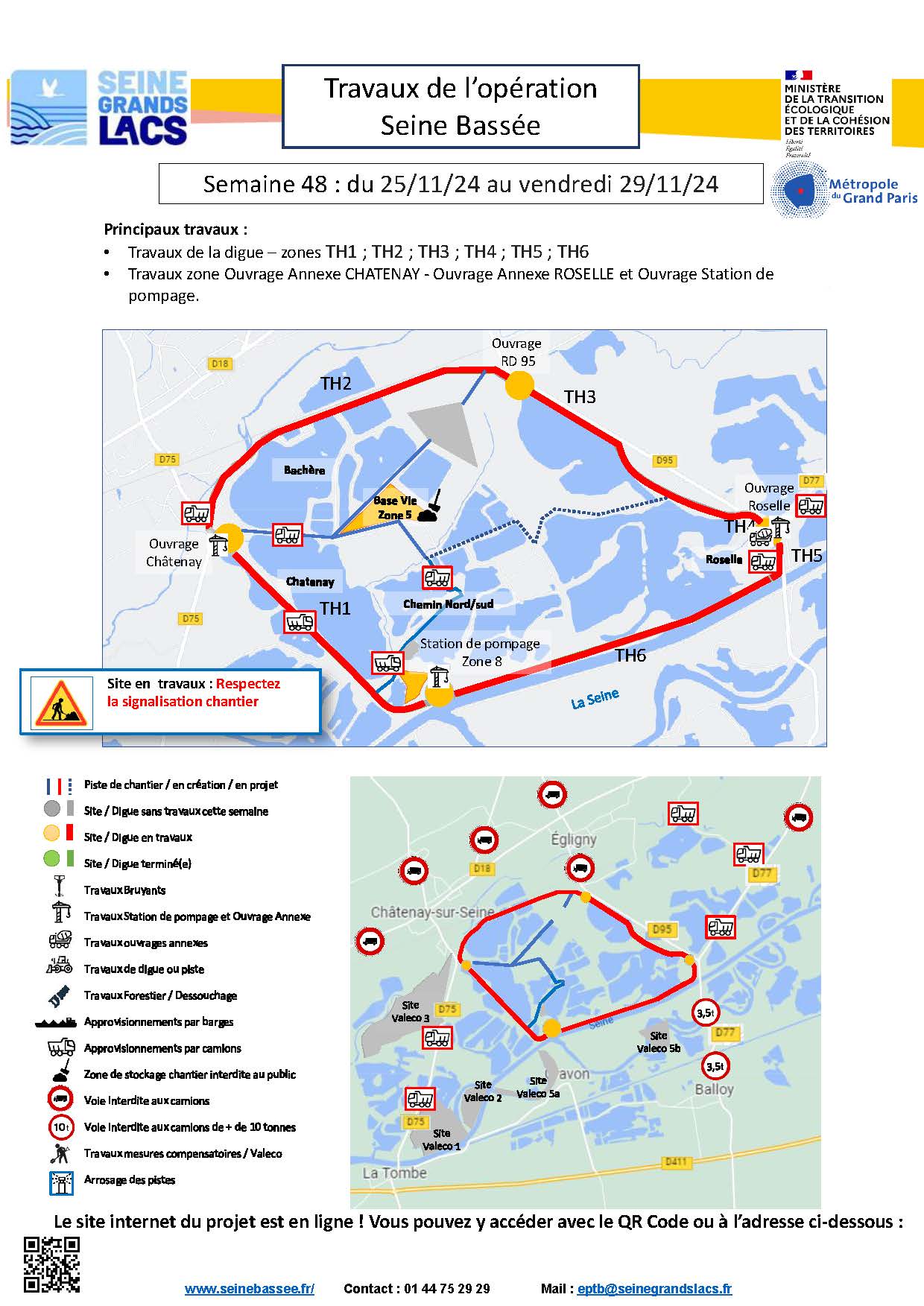 Aménagement Opération Seine Bassée Travaux de l'opération Seine Bassée - du 25 novembre 2024 au 29 novembre 2024 Pour la semaine, les principaux travaux de l'EPTB Seine Grands Lacs. Type de chantier : Aménagement Opération Seine Bassée Durée : Début : 25/11/2024 - 07h00 Fin : 29/11/2024 - 14h00 Fin des travaux : 2024 Routes impactées : RD 75, RD 18, RD 95 et RD 77 Date de publication de la page et auteur de publication Créé le : 21/03/2024, par Communauté de communes Bassée-Montois Télécharger affiche-la-bassee-y-s48_sgl2024.pdf PDF 447.84 Ko Localiser Choice of plan Précédent Retour à la liste Suivant