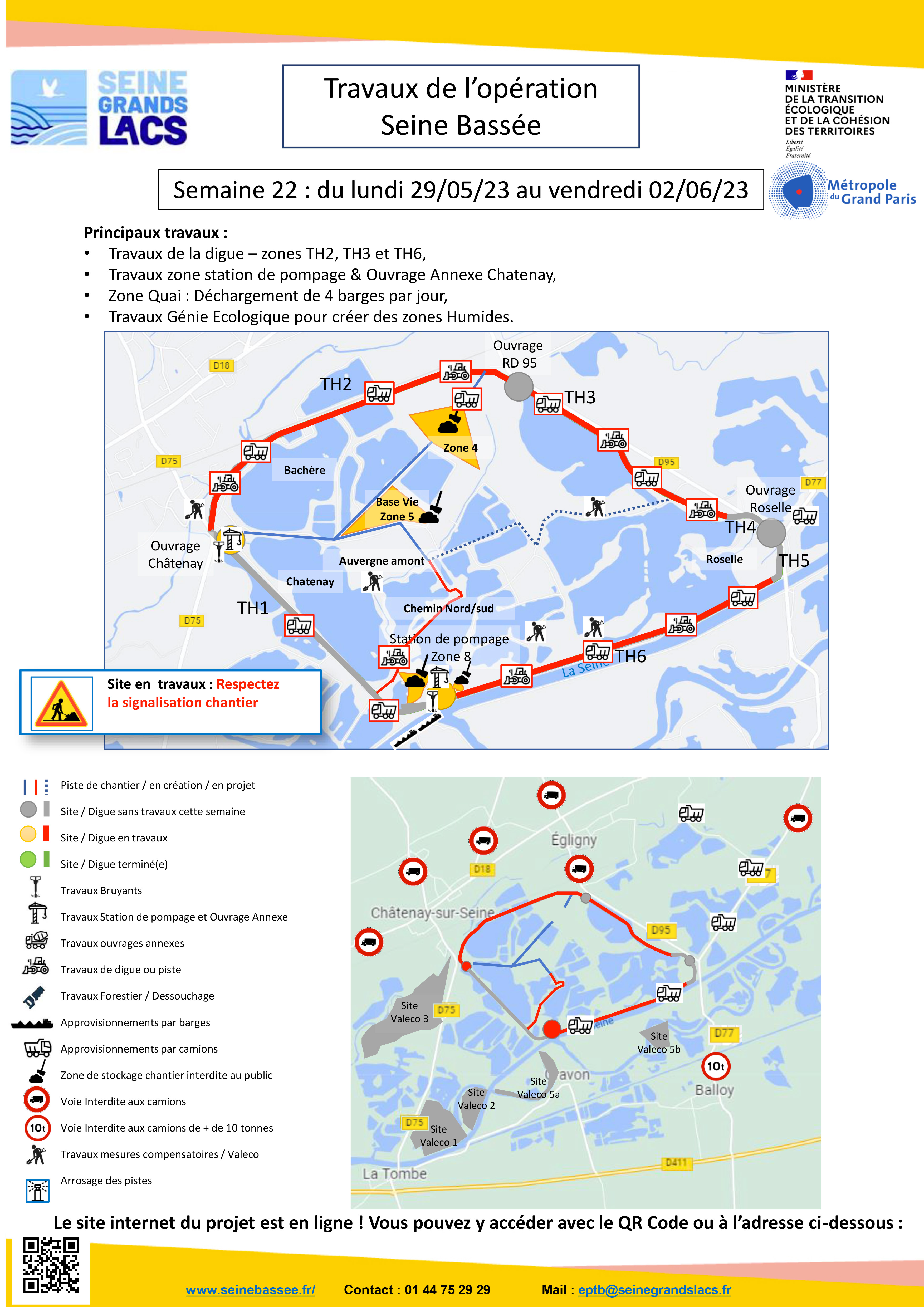 Aménagement Opération Seine Bassée Travaux station de pompage de Châtenay-sur-Seine - le samedi 27 mai Pour la semaine, les principaux travaux de l'EPTB Seine Grands Lacs. Type de chantier : Aménagement Opération Seine Bassée Durée : Début : 27/05/2023 Fin : 28/05/2023 Fin des travaux : 2024 Routes impactées : RD 75, RD 18, RD 95 et RD 77 Date de publication de la page et auteur de publication Créé le : 27/04/2023, par Communauté de communes Bassée-Montois Télécharger affiche-la-bassee-x-s22_sgl2023.pdf PDF 456.37 Ko Localiser Choice of plan Précédent Retour à la liste Suivant