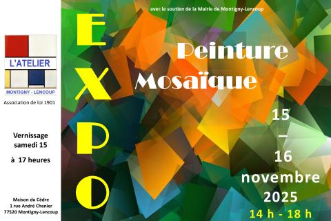 Du 15 Nov 2025 au 16 Nov 2025 Exposition Exposition Peinture et Mosaïque à Montigny-Lencoup Shedule 14h00 à 18h00 Place Montigny-Lencoup